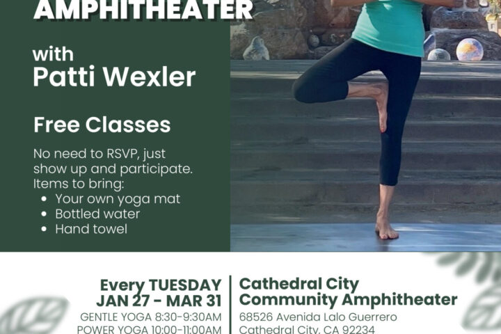 The Cathedral City Parks and Community Events Commission proudly brings free yoga classes to the Cathedral City Community Amphitheater, 68526 Avenida Lalo Guerrero, Cathedral City. Gentle Yoga will take place at 8:30-9:30 a.m. and Power...Continue reading→