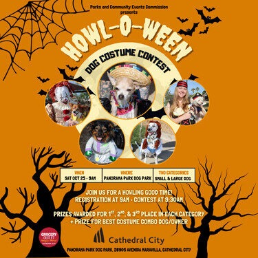 But the fun starts even earlier! On Saturday, October 25 at 9 a.m., bring your furry friends to the Howl-O-Ween Dog Costume Contest at Panorama Park Dog Park (28905 Avenida Maravilla). Sponsored by Grocery Outlet and presented by our Parks and Community Events Commission, this contest features categories for both small and large dogs, with prizes for 1st, 2nd, and 3rd place in each category. There's even a prize for best dog/owner costume combo! Registration begins at 9 a.m., with the contest kicking off at 9:30 a.m.