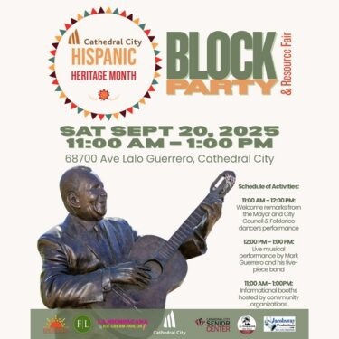 The City of Cathedral City and the Cathedral City Senior Center invite you to a vibrant celebration of Hispanic Heritage Month in the heart of our community. This special event brings together music, dance, food, and valuable resources in a festive and family-friendly atmosphere. The celebration kicks off at 11:00 AM with remarks from the Mayor …Read more