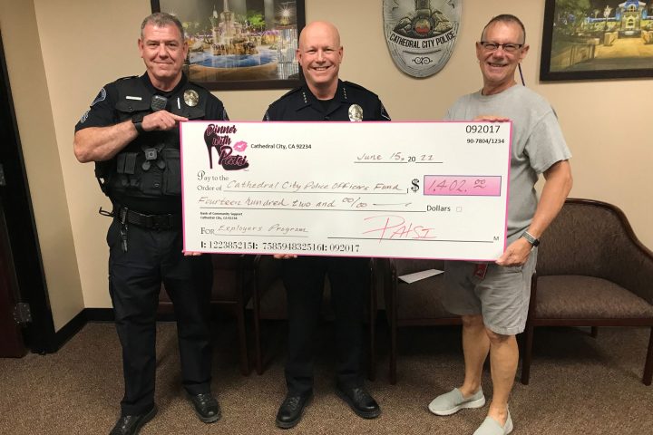 Thommy Kocan, AKA Patsi, was at the Cathedral City Police Department today and presented contributions totaling $1,402 from the most recent Dinner with Patsi, held on June 15, 2022, at the Runway Restaurant in Cathedral...Continue reading→