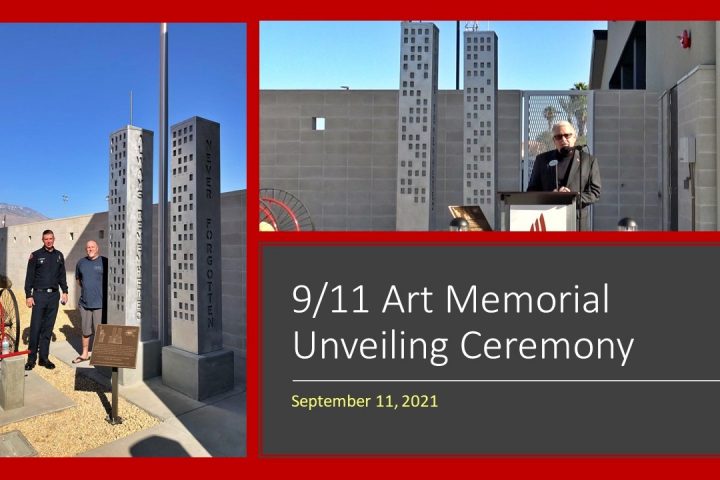 On Saturday, September 11, 2021, the City Council, Cathedral City Public Arts Commission and the Cathedral City Fire Department unveiled a 9/11 Art Memorial commemorating the 20th Anniversary of the September 11, 2001 terrorist attacks...