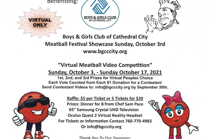 The 9th Annual Sammy’s International Meatball Festival benefiting the Boys and Girls Club of Cathedral City will hold its annual event virtually this year as they successfully did in 2020. From Sunday, October 3 through...Continue reading