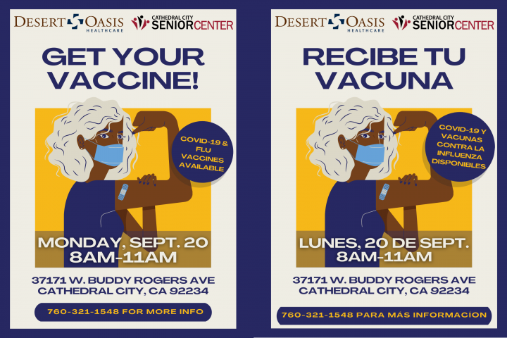 Thanks to Desert Oasis Health Care, seniors or any qualified person may get their COVID-19 and Flu vaccine on Monday, September 20, 2021 between 8 am and 11 am. The Cathedral City Senior Center is...