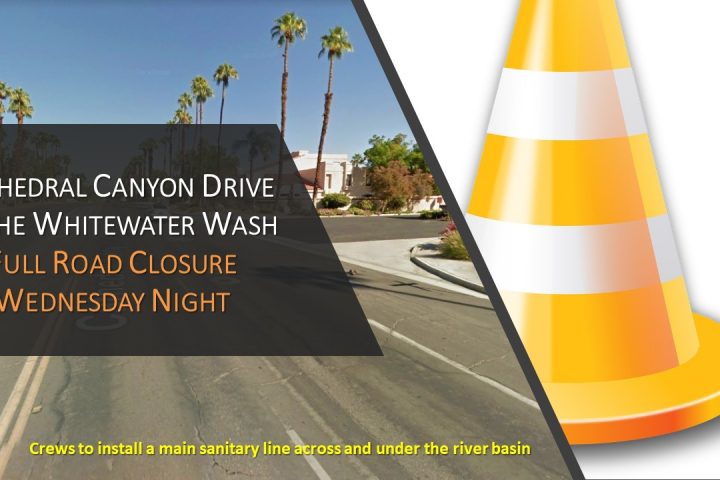 CONE ZONE UPDATE: Cathedral Canyon Drive at the Whitewater Wash Will Experience a Complete Road Closure Wednesday Night