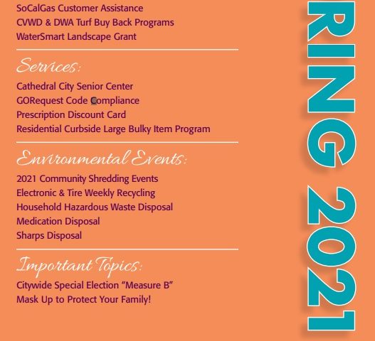 Twice a year, the City of Cathedral City sends out its popular direct mailer about City programs, services, community and environmental events as well as important city topics. Towards the end of January, the mailer...Continue reading