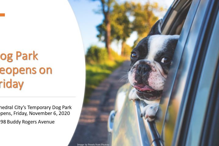 News that dogs are going to love! The Cathedral City Temporary Dog Park will reopen this Friday, November 6, 2020. It has been closed due to road construction of Buddy Rogers Avenue and the construction...