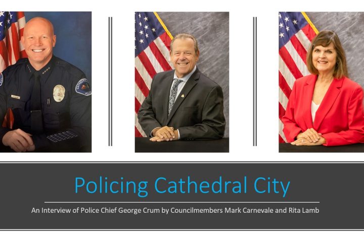 Watch the following video as Councilmembers Mark Carnevale and Rita Lamb interview Police Chief George Crum about policing practices in Cathedral City. You will hear discussions on police officers’ duty to our community, use of...Continue reading