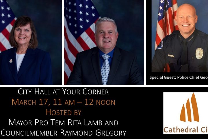 Register now for March’s virtual “City Hall at Your Corner” as Mayor Pro Tem Rita Lamb and Councilmember Raymond Gregory host the event for an informal discussion of issues in Cathedral City. Please welcome the...Continue reading
