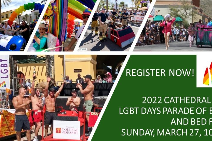 Join us for the 2022 Cathedral City LGBT Days’ Parade of Beds and Bed Race on Sunday, March 27, 2022 starting at 10:00 am in front of City Hall. The Parade of Beds allow you...