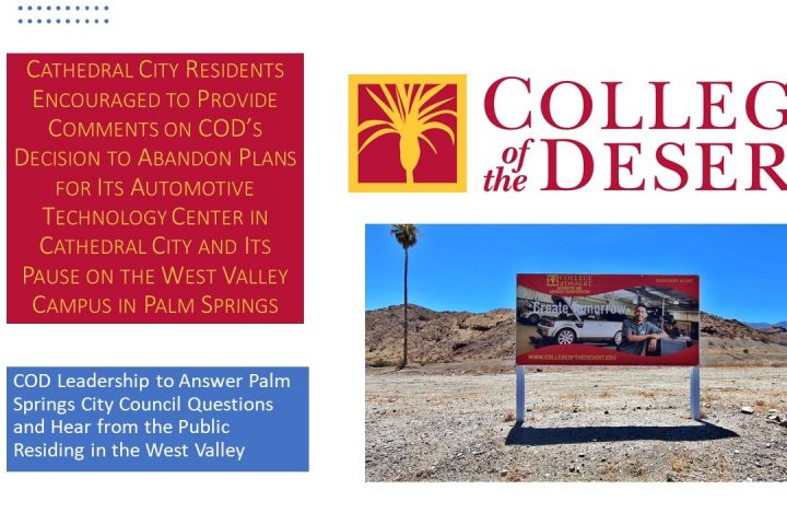 Cathedral City residents are encouraged to join the zoom meeting or call in with their comments The City of Cathedral City has been notified by the City of Palm Springs that Dr. Martha Garcia,...Continue reading