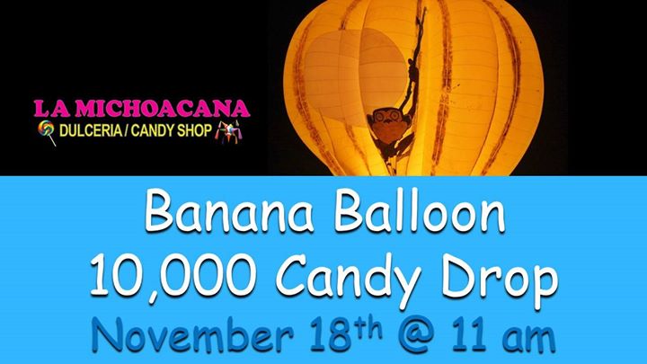 Bring the kids to the 4th Annual Cathedral City Hot Air Balloon Festival on Saturday, November 18th at 11 am for the Banana Balloon Candy Drop sponsored by La Michoacana Dulceria / Candy Shop.