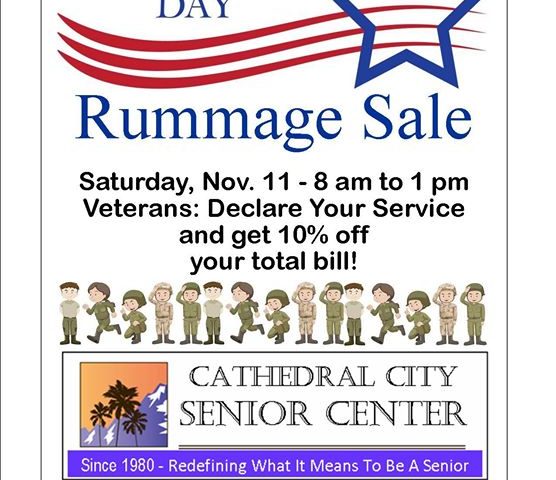 Veteran’s Day Rummage Sale at the Cathedral City Senior Center The Cathedral City Senior Center is offering a ten percent discount on all purchases to veterans who declare their service at their Veterans Day Rummage...Continue reading
