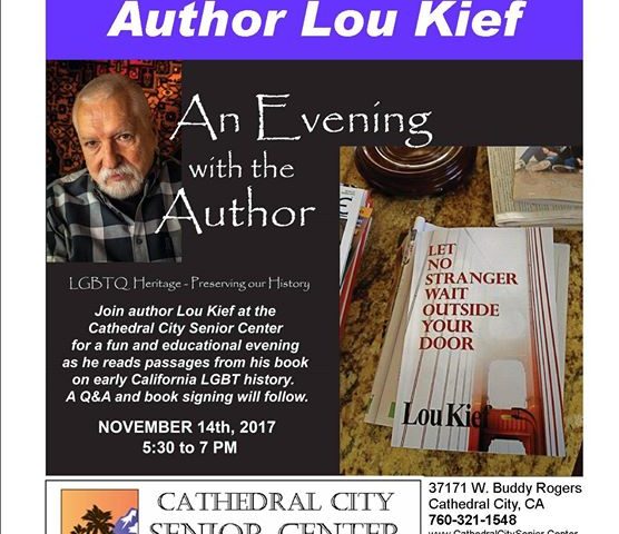 Cathedral City Senior Center 2nd Tuesday Presentation Author Lou Kief – “Let No Stranger Wait Outside Your Door” a memoir of coming out as a gay man in San Francisco during the 1970s. Lou Kief...Continue reading