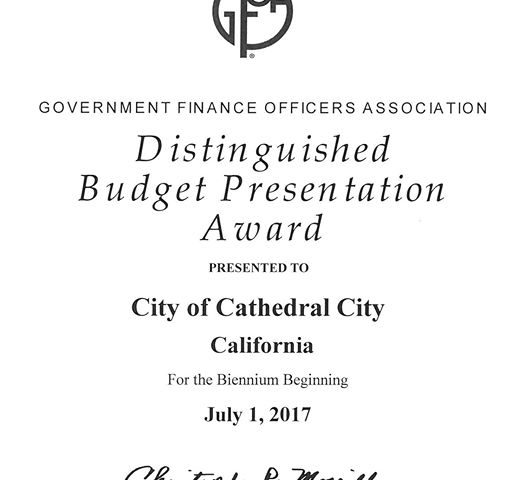CITY OF CATHEDRAL CITY RECEIVES AN AWARD FOR ITS BUDGET PLANNING & REPORTING – 10TH YEAR IN A ROW The Government Finance Officers Association of the United States and Canada (GFOA) recognized the City of...Continue reading