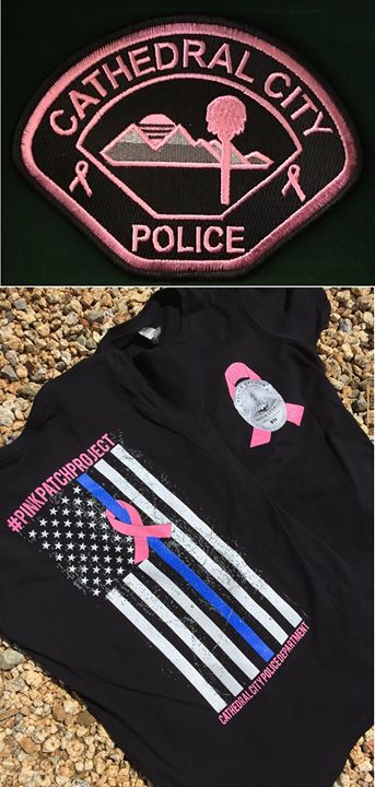 If you would like to support the breast cancer awareness campaign and help fund breast cancer research, you may purchase a pink CCPD patch ($10) or t-shirt ($20). Simply, go to the front desk of the Cathedral City Police Department across from City Hall at 68-700 Avenida Lalo Guerrero.