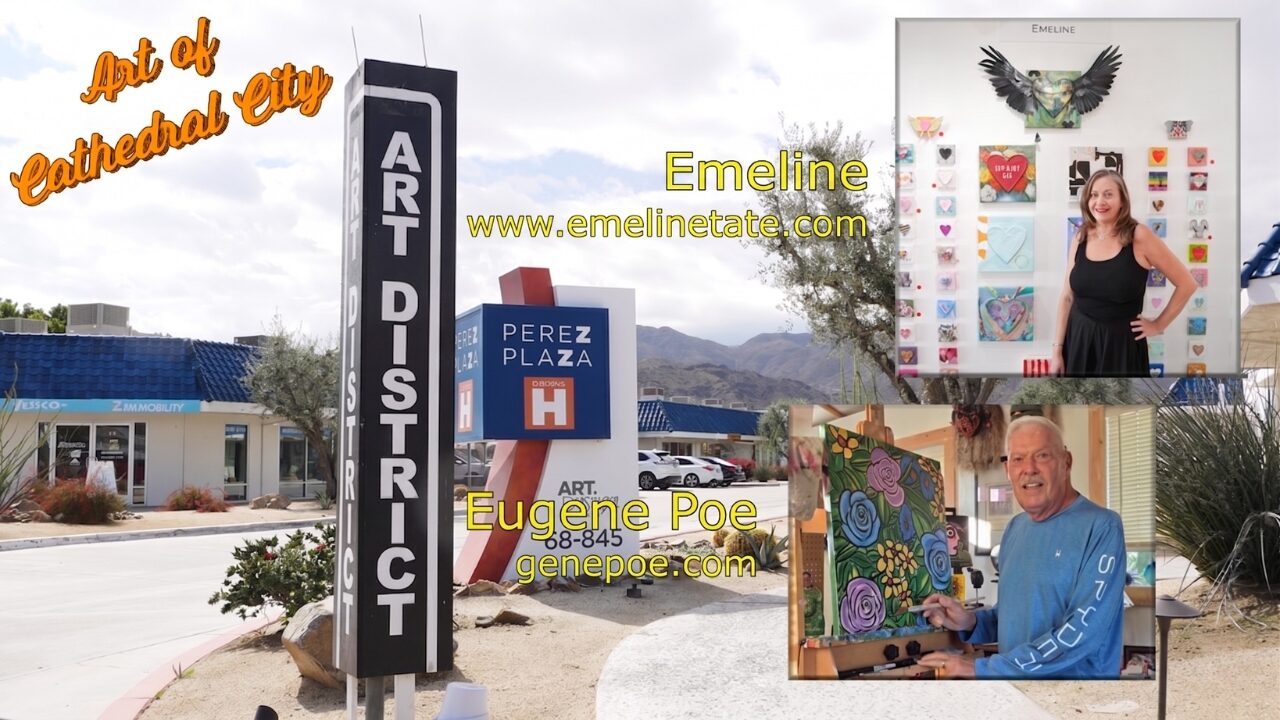 In the latest episode of “The Art of Cathedral City,” CCTV Host Conrad Angel Corral explores the creative worlds of two distinctive Cathedral City artists: Emeline, whose studio is in The Perez Art District, and Eugene Poe, whose vibrant desert-inspired paintings fill a private home gallery just minutes away.