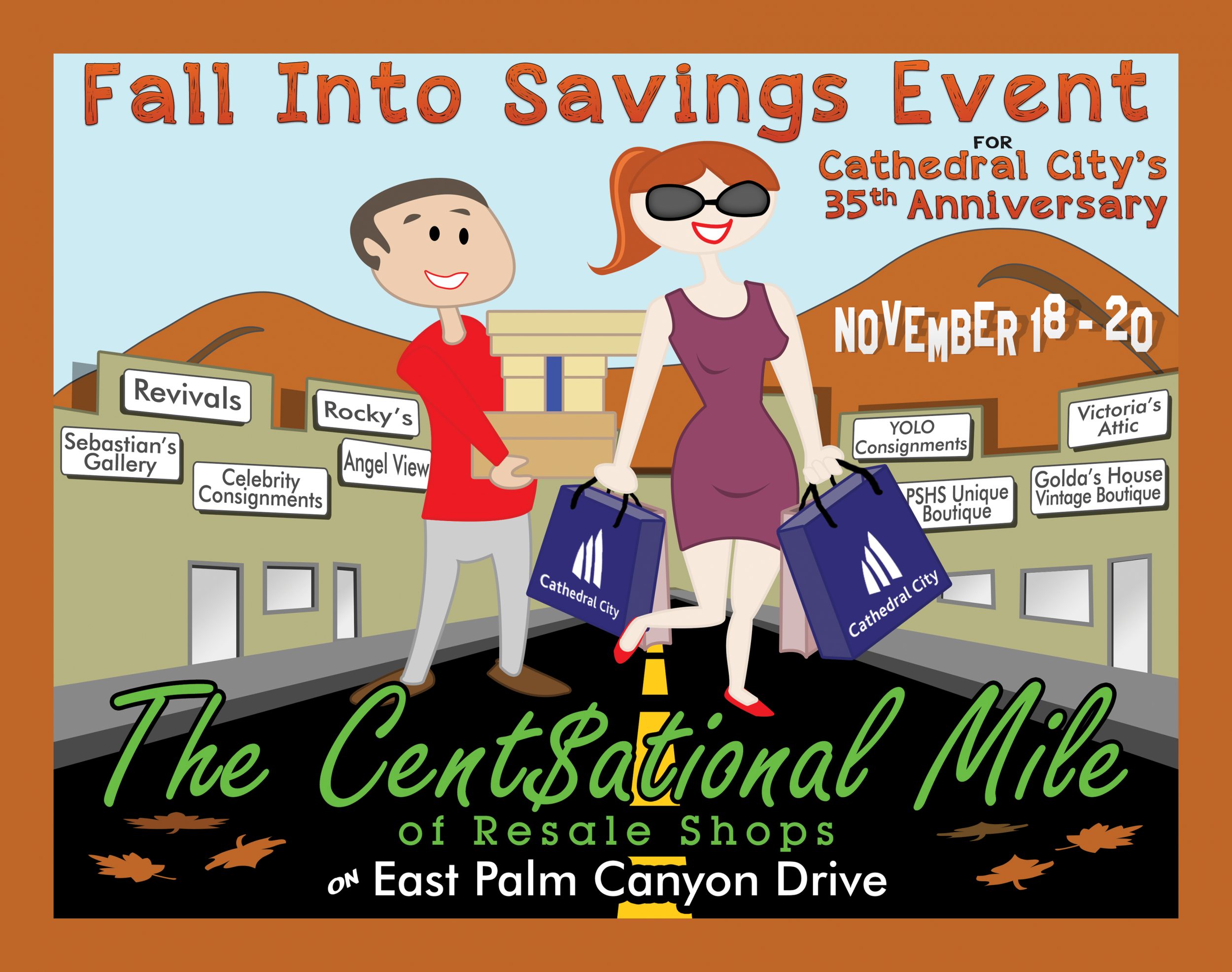 Join us for the FALL INTO SAVINGS EVENT at Cathedral City’s Cent$ational Mile of Resellers giving you up to 50% off prices.