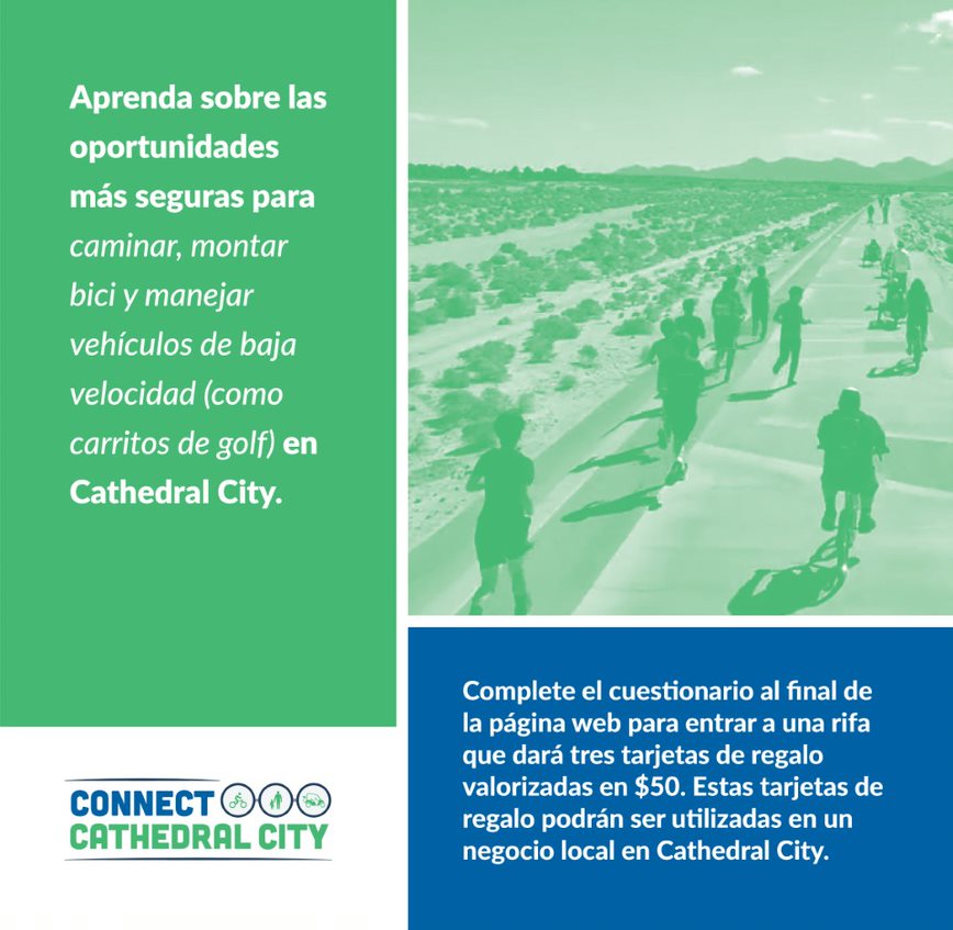 As we continue during these unprecedented times, figuring out ways to improve the mobility options in our communities is becoming increasingly important. Learn more about Connect Cathedral City! Take a look at four upcoming projects that aim to create safer and better opportunities for you to walk, ride a bike, or drive your golf cart to key destinations in the City!