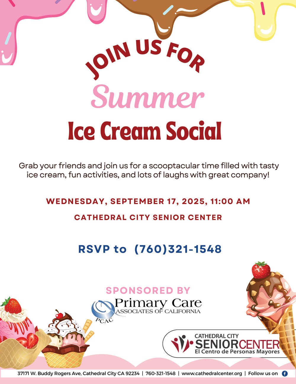 Grab your friends and join in a scooptacular time filled with tasty ice cream, fun activities, and lots of laughs with great company. RSVP to 760-321-1548