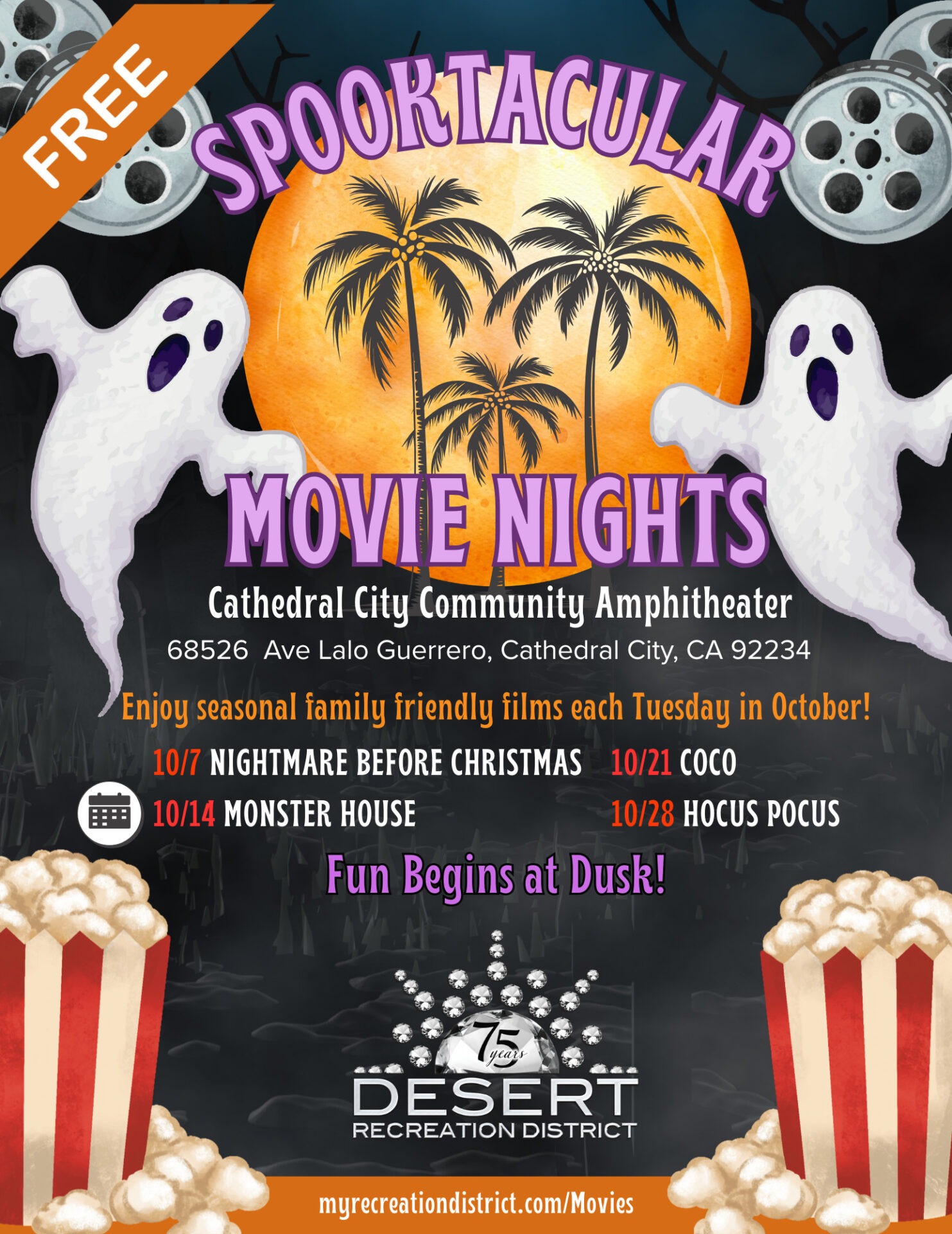Come join in the fun at Spooktacular Movie Nights in the amphitheater. The fun starts at DUSK each Tuesday night during October with be seasonal family friendly films.