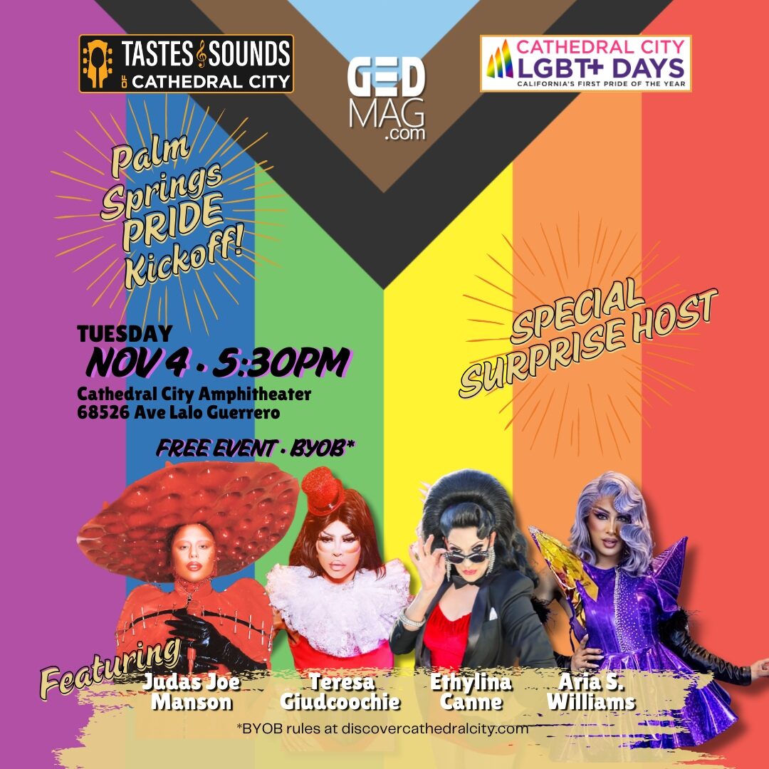 Be a part of kicking off PALM SPRINGS PRIDE at TASTE & SOUNDS of Cathedral City on Tuesday, November 4, 2025, from 5 PM to 7PM. Cathedral City LGBT+ Days in association with GED Magazine […]