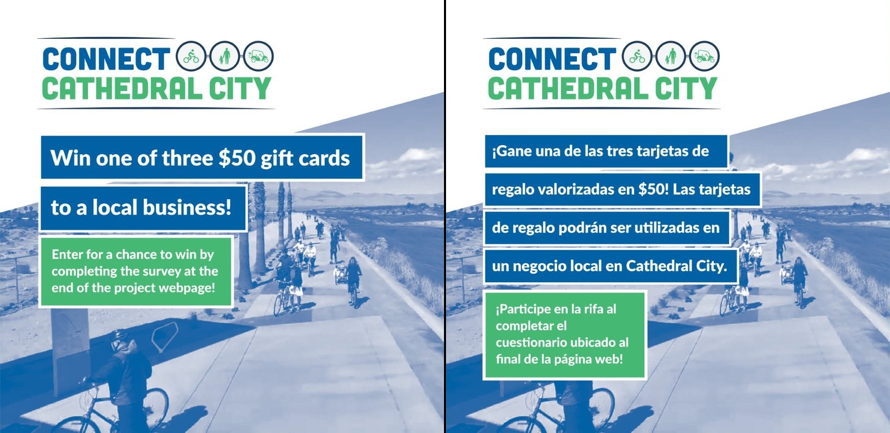 Have you filled out the Connect Cathedral City survey? If not, you still have a chance. Friday is the last day! Take an active part in improving the City! Help us better understanding the community’s needs and travel experiences by taking our survey https://bit.ly/ccc-eng (English) or https://bit.ly/ccc-esp (Spanish). Find out more information about Connect CC here: https://bit.ly/_connect-cc.