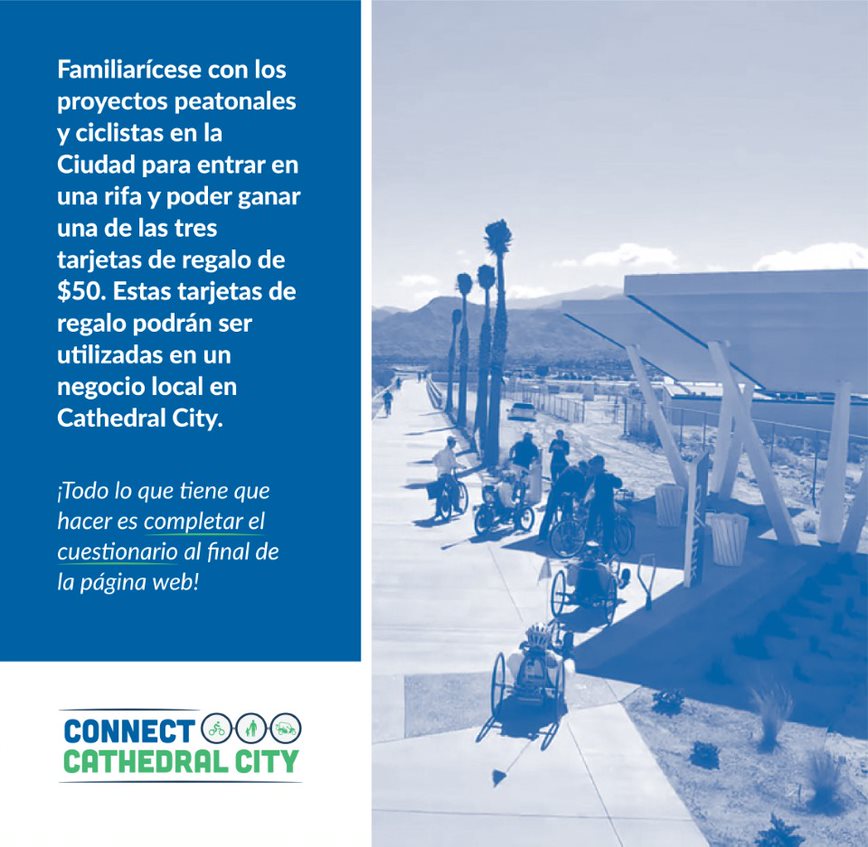 Connect Cathedral City is in its last week of gathering public input on upcoming projects! Take a quick moment to check out https://bit.ly/_connect-cc and fill out the project survey! Help us make the City a more walkable and bikeable destination in the Coachella Valley! Whether its accessing shopping centers, entertainment venues, parks, or trails, these projects aim to create more and safer opportunities for physical activity within Cathedral City.