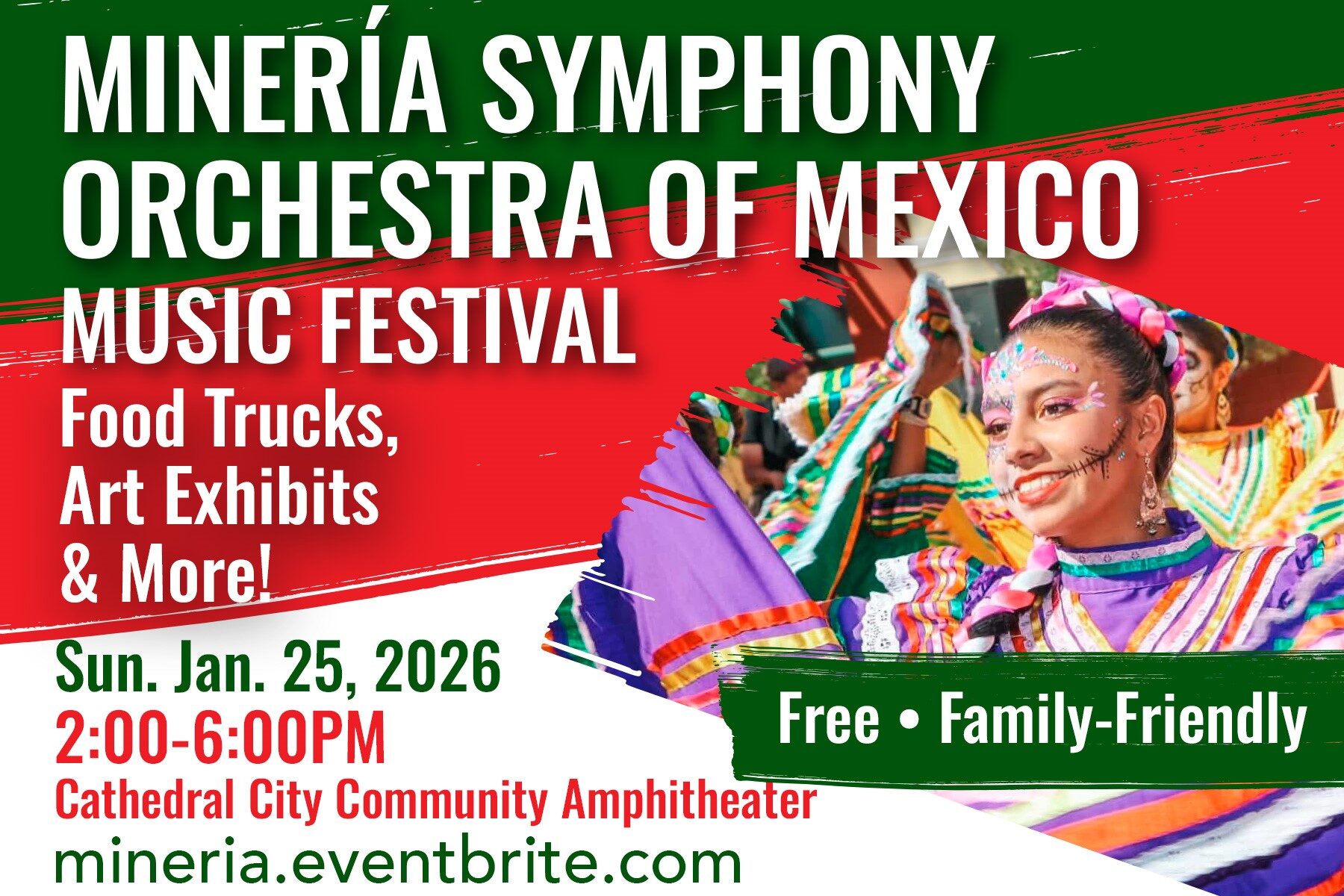 Get ready for an afternoon filled with rhythm, culture, and community as the Palm Springs Friends of Philharmonic (PS Phil) proudly presents a first-of-its-kind Latin-American music festival in the Coachella Valley. On Sunday, January 25, 2026, the vibrant sounds of the Minería Symphony Orchestra of Mexico will take center stage at the Cathedral City Amphitheater for a spectacular FREE celebration of music and dance, running from 2:00 to 6:00 p.m., with gates opening at 1:30 p.m. Reserve FREE tickets at Mineria.Eventbrite.com.