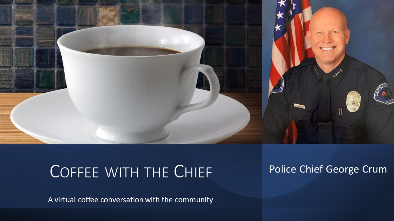 This month, Police Chief George Crum will host “Coffee with the Chief” on Thursday, March 18, 2021 from 3 pm to 4 pm. Due to COVID-19 pandemic, the conversation will be held online instead of at a local establishment that sells coffee. Register Now at https://bit.ly/38HpmwS to join the Zoom virtual conversation to learn about recent crime data, what the latest criminal trends are, and how to prevent crimes against you or in your neighborhood. It is also an opportunity to ask public safety questions that are important to you. Once registered, you will receive an email with a link to join the conversation on Thursday.