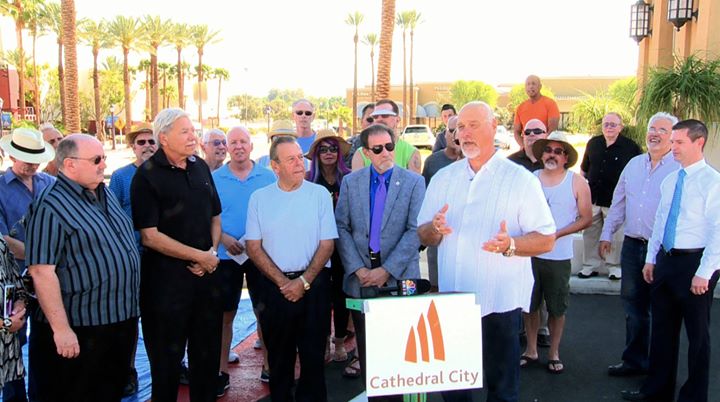 Today, the entire City Council of Cathedral City, City staff, members of the Public Arts Commission, individuals from the Cathedral City LGBT Days Planning Committee, and local residents helped unveil Cathedral City’s “Rainbow Crossing,” – a first-of-its-kind crossing in the Coachella Valley that symbolizes and celebrates diversity.