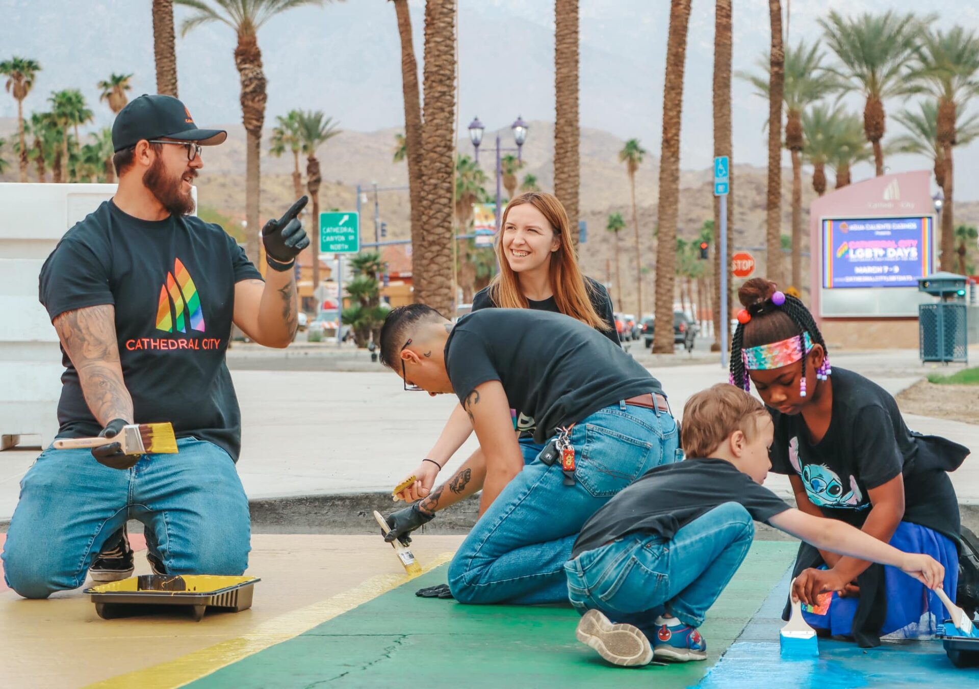It’s that time of year! It’s time to refresh the Rainbow Crossing in preparation for the 10th anniversary of Cathedral City LGBT+ Days, which takes place March 6-8, 2026. So, we are putting on a Paint Party for Saturday, Feb. 28, 2026, starting at 9 a.m. Wear old clothes, a pillow or knee pads to kneel on, and old shoes.