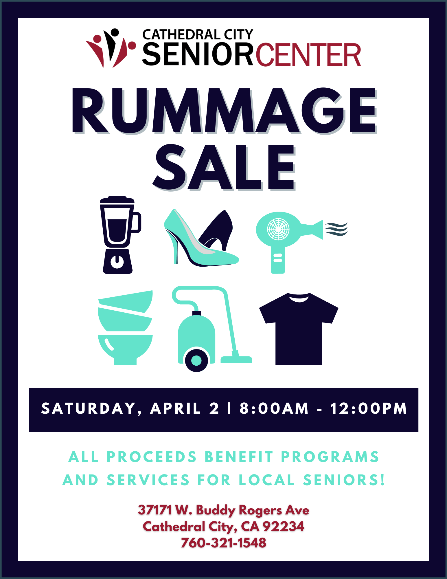 Get some bargains and raise funds all at the same time! Go to the Cathedral City Senior Center, 37171 West Buddy Rogers Avenue, on Saturday, April 2nd from 8 am to 12 pm for the 2022 Cathedral City Senior Center Rummage Sale. You will find all kinds of household items. Best of all, the proceeds of the sale help support senior center programming and operations.