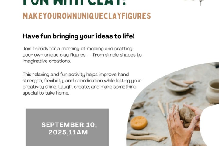MAKE YOUR OWN UNIQUE CLAY FIGURES with Claudio D’Agostino at the Cathedral City Senior Center on September 10th at 11am. Have fun bringing your ideas to life! Join friends for a morning of molding and...Continue reading