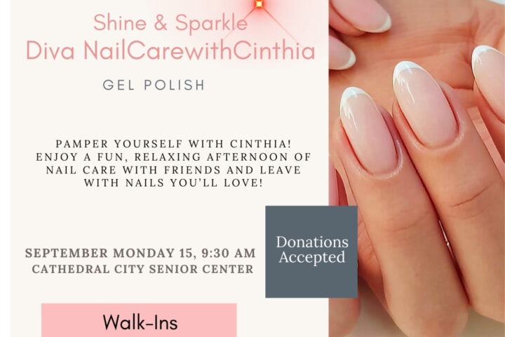 Pamper yourself at the Cathedral City Senior Center on Monday, September 15th starting at 9:30am! Enjoy a relaxing afternoon of nail care with friends and leave with nails you’ll love! Walk-ins OK. Donations accepted.Continue reading