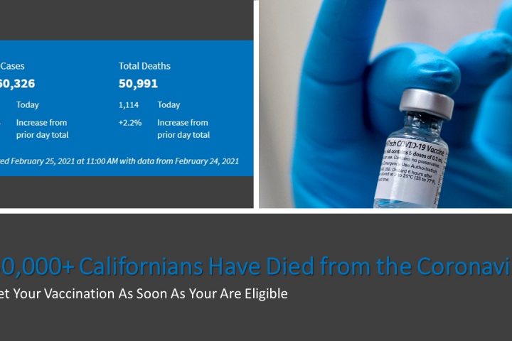 An undesirable milestone was reached today as more than 50,000 Californians have died from the Coronavirus in the past year. More than 3.4 million Californians contracted the disease since the global pandemic began. It...