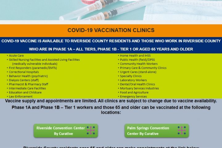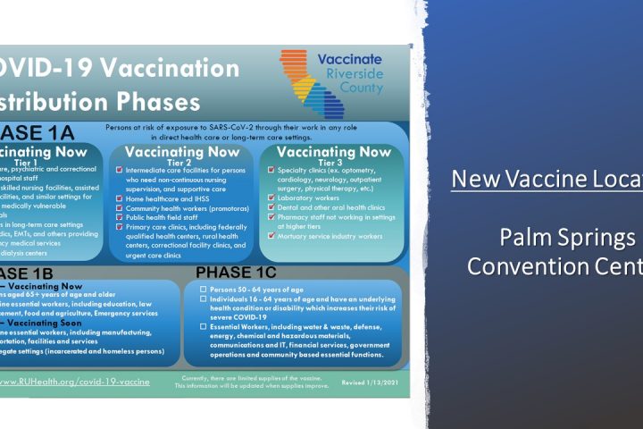 New vaccine sites opening, expanding hours of operation and one site closing. Riverside County health officials have planned a series of changes to better serve residents and provide more opportunities for COVID-19 vaccinations. The updated...Continue reading