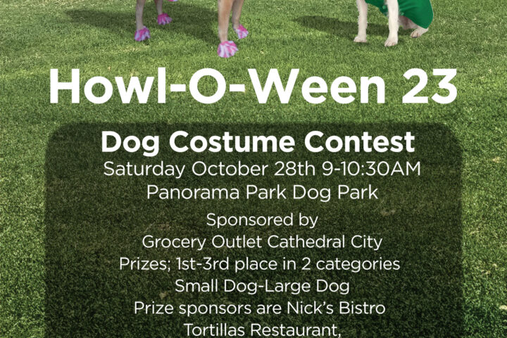 The Cathedral City Parks & Community Events Commission presents the inaugural Howl-O-Ween 23 Dog Costume Contest from 9-10:30 a.m. at Panorama Park Dog Park, 28905 Avenida Maravilla, Cathedral City, CA 92234. Sponsored by: Grocery Outlet...