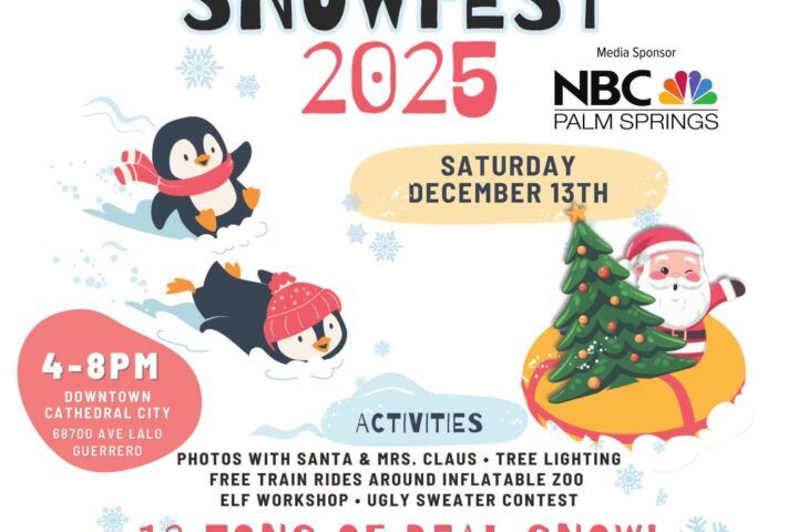 Join us for Cathedral City’s SnowFest, presented once again by Comfort Air, from 4-8 p.m. on Saturday, Dec. 13, 2025. The annual event captures all the holiday spirit and places it at one event with...Continue reading