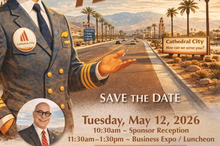 2026 Cathedral City State of the City Join Mayor Raymond Gregory and the City Council for the annual State of the City. This year’s event, produced by Hocker Productions, features a business expo, awards ceremony,...Continue reading