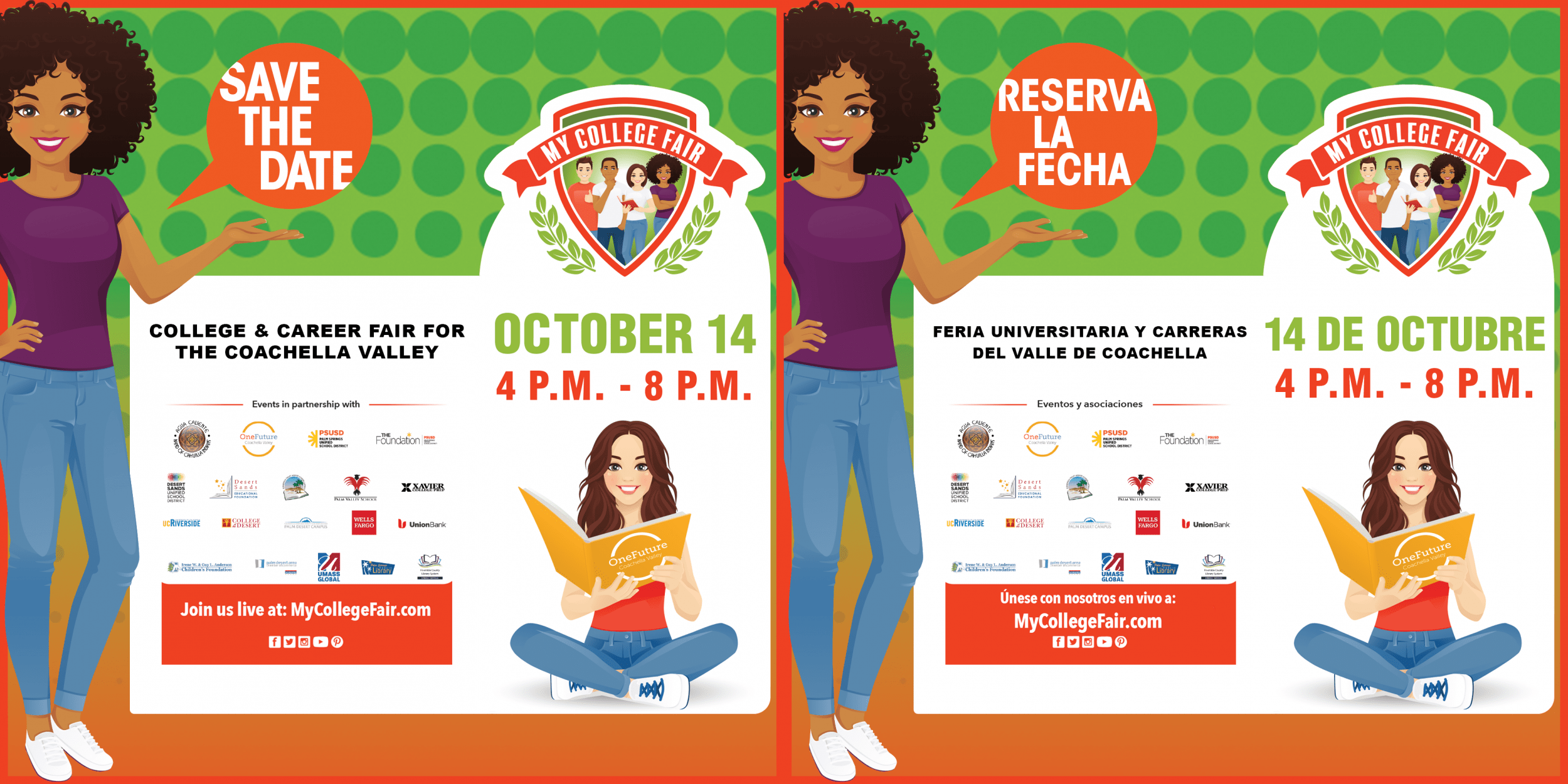 Join us from 4 – 8 p.m. Oct. 14 for our virtual LIVE Regional College & Career Fair for Coachella Valley. Reserve your spot today at: MyCollegeFair.com (Link in bio)